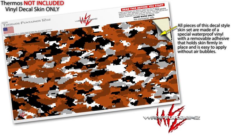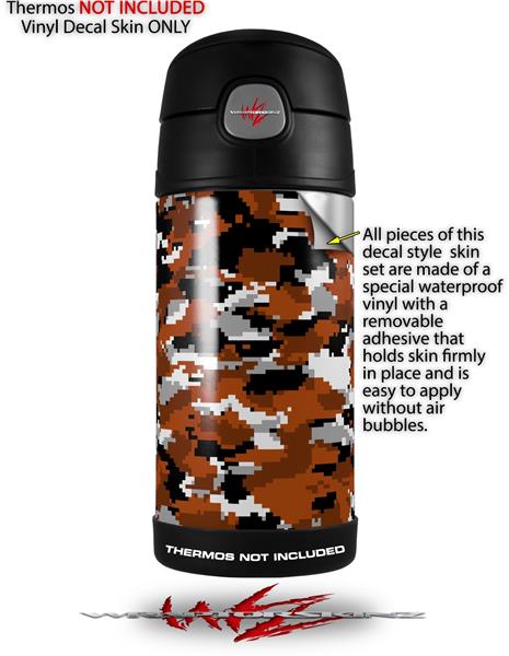 Skin Decal Wrap for Thermos Funtainer 12oz Bottle WraptorCamo Digital Camo Burnt Orange (BOTTLE NOT INCLUDED)
