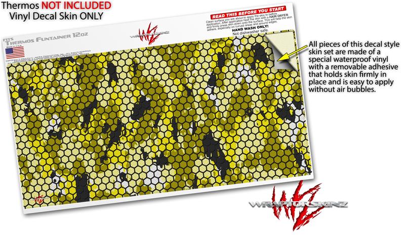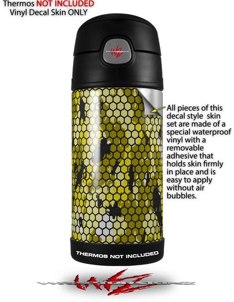 Skin Decal Wrap for Thermos Funtainer 12oz Bottle HEX Mesh Camo 01 Yellow (BOTTLE NOT INCLUDED)