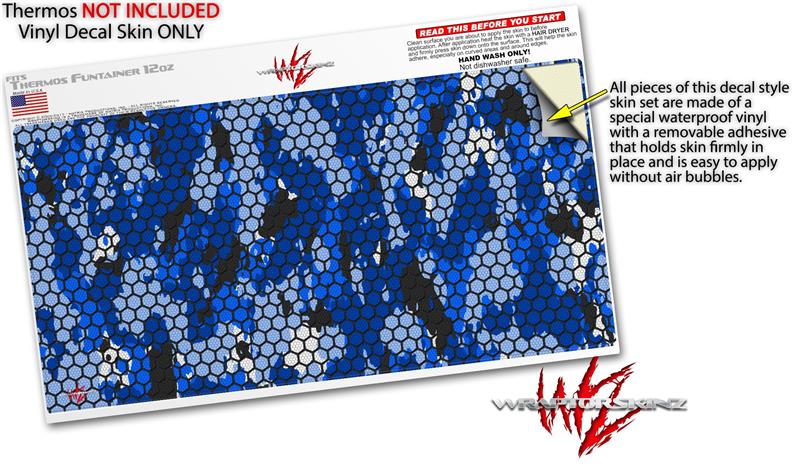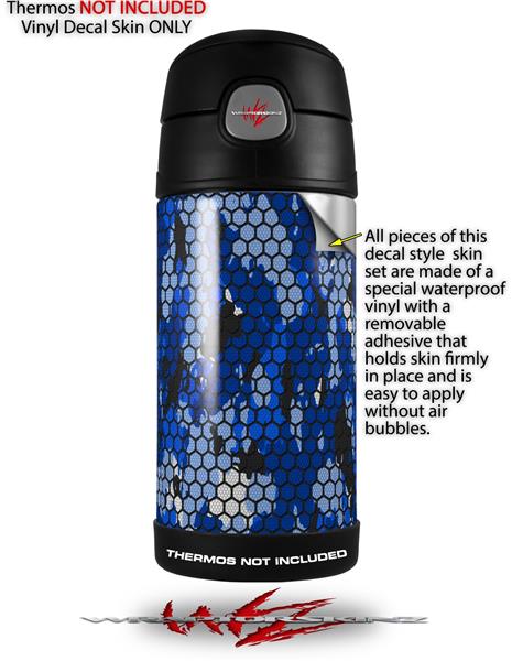 Skin Decal Wrap for Thermos Funtainer 12oz Bottle HEX Mesh Camo 01 Blue Bright (BOTTLE NOT INCLUDED)