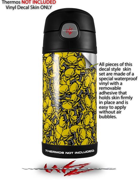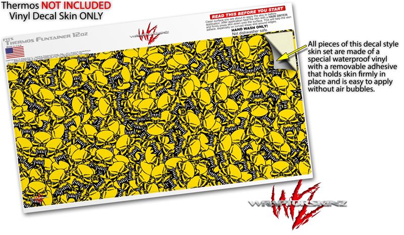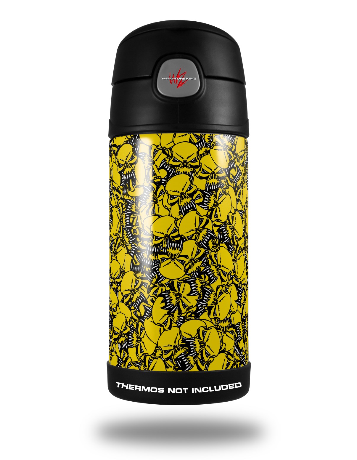 Skin Decal Wrap for Thermos Funtainer 12oz Bottle Scattered Skulls Yellow (BOTTLE NOT INCLUDED)