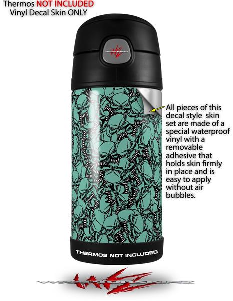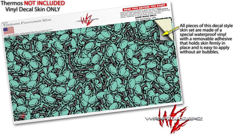 Skin Decal Wrap for Thermos Funtainer 12oz Bottle Scattered Skulls Seafoam Green (BOTTLE NOT INCLUDED)