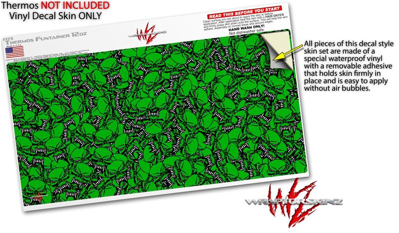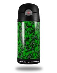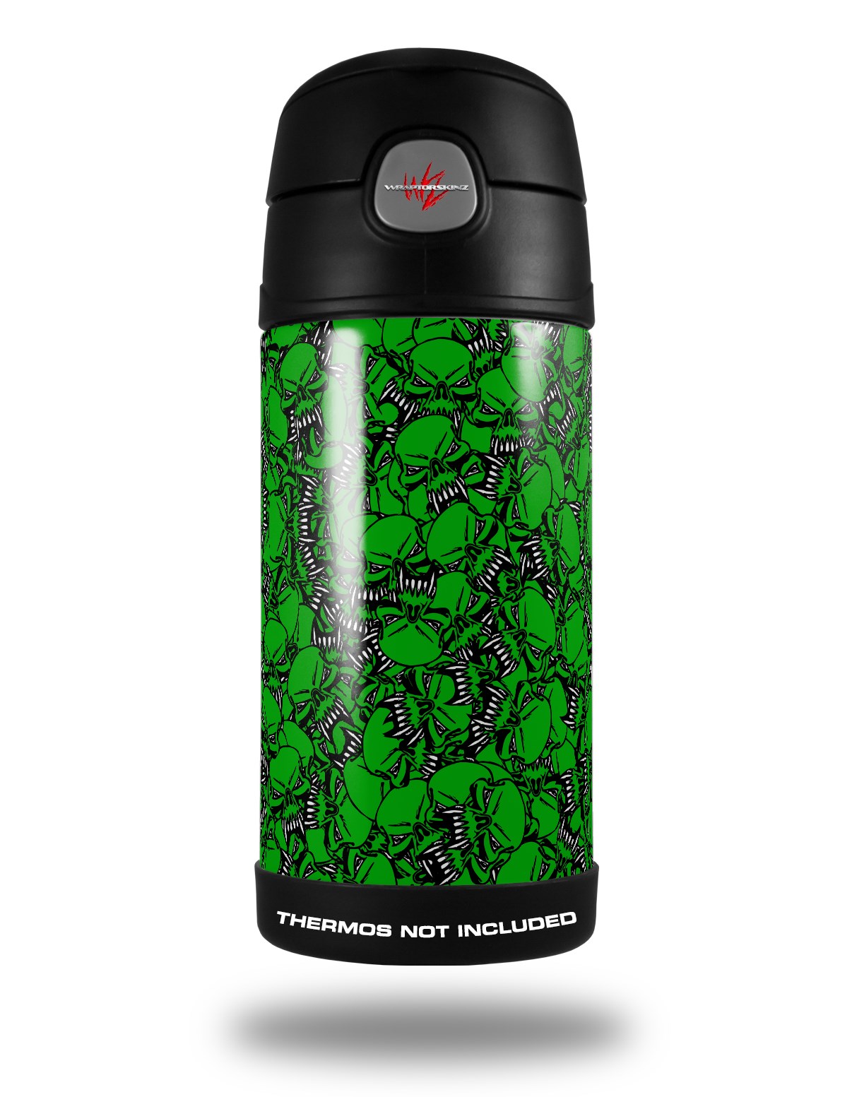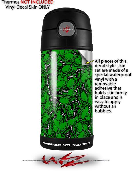 Skin Decal Wrap for Thermos Funtainer 12oz Bottle Scattered Skulls Green (BOTTLE NOT INCLUDED)