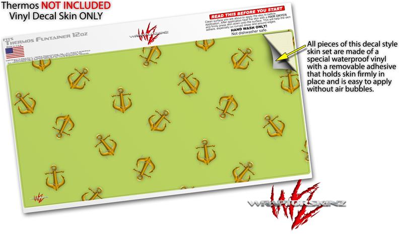 Skin Decal Wrap for Thermos Funtainer 12oz Bottle Anchors Away Sage Green (BOTTLE NOT INCLUDED)