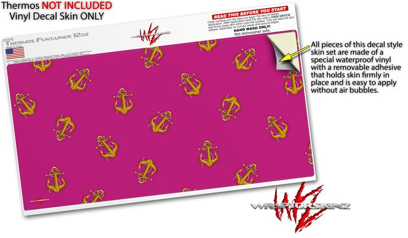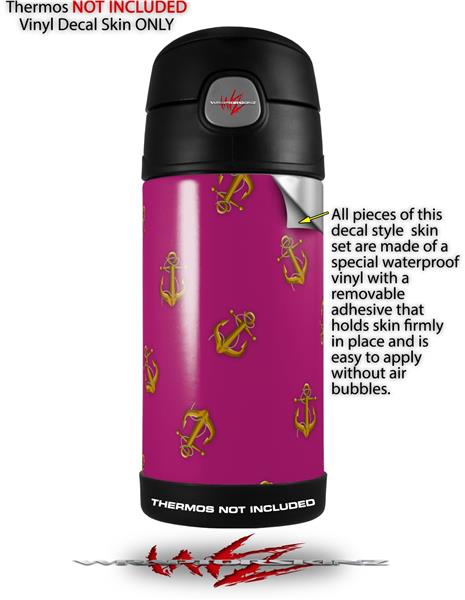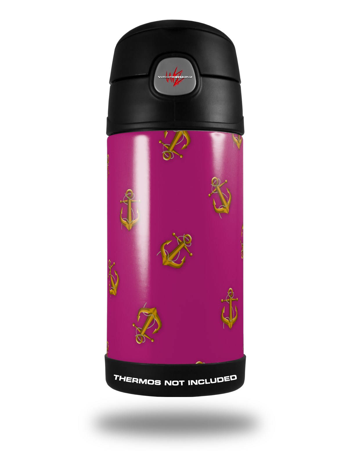 Skin Decal Wrap for Thermos Funtainer 12oz Bottle Anchors Away Fuschia Hot Pink (BOTTLE NOT INCLUDED)