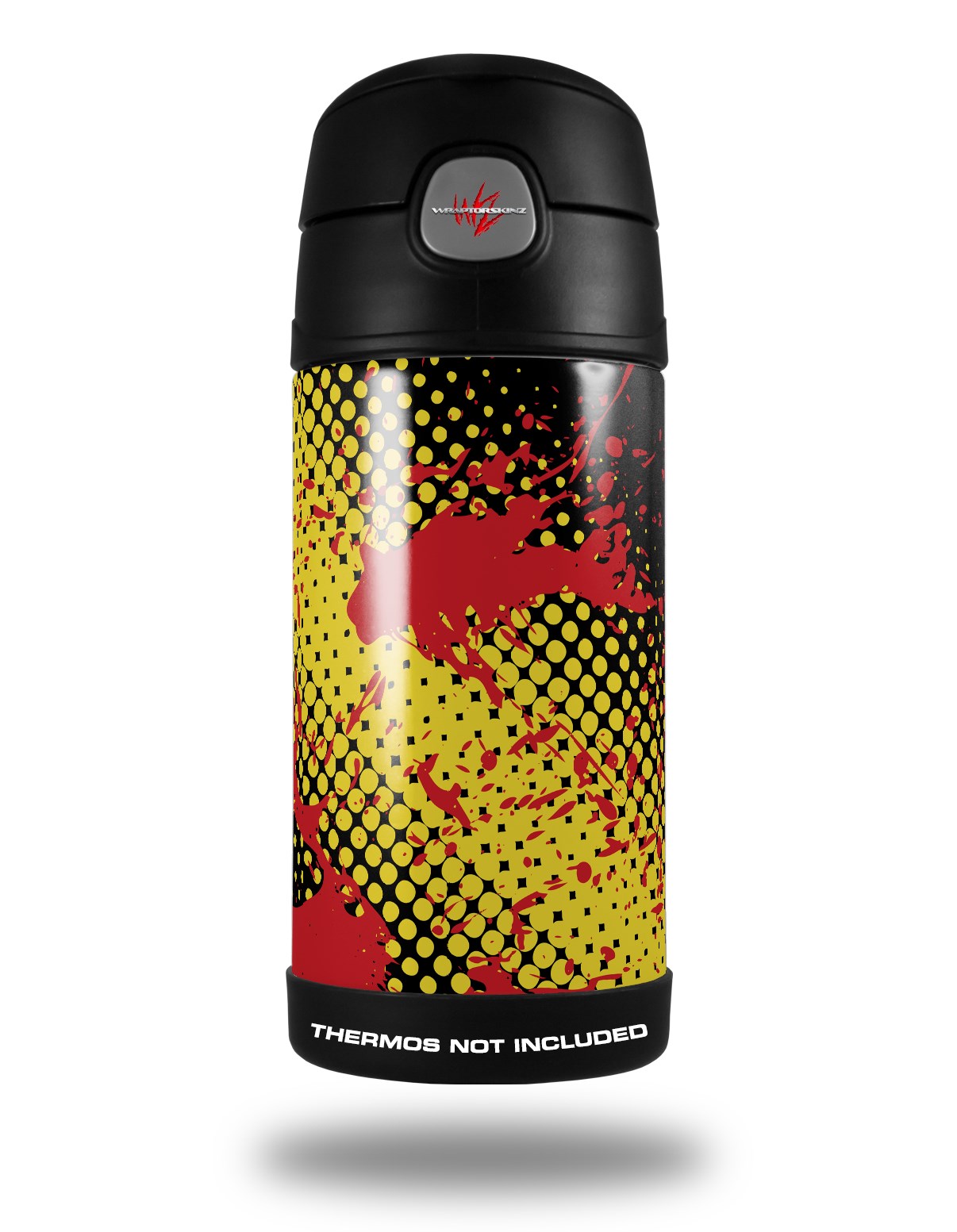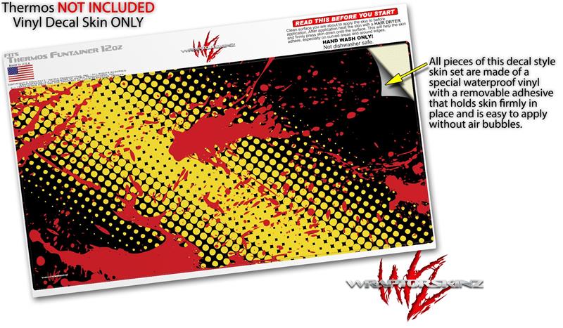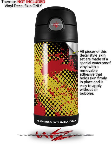 Skin Decal Wrap for Thermos Funtainer 12oz Bottle Halftone Splatter Yellow Red (BOTTLE NOT INCLUDED)