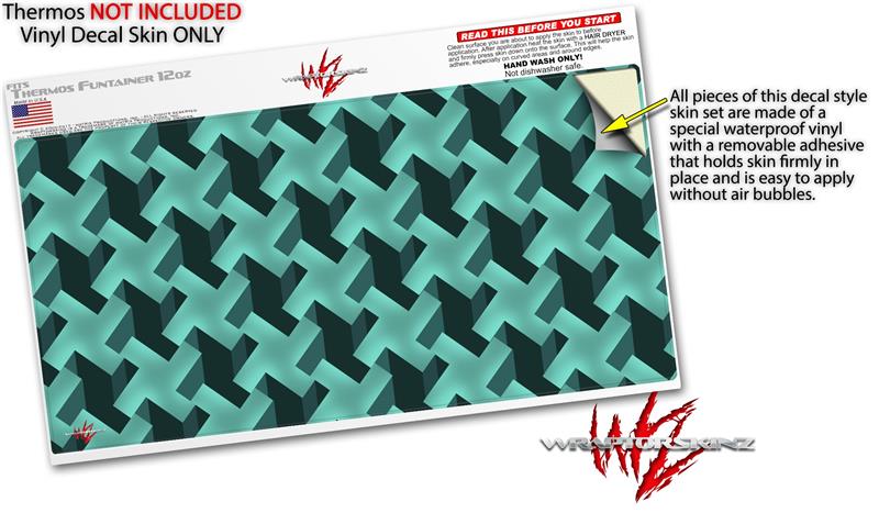 Skin Decal Wrap for Thermos Funtainer 12oz Bottle Retro Houndstooth Seafoam Green (BOTTLE NOT INCLUDED)