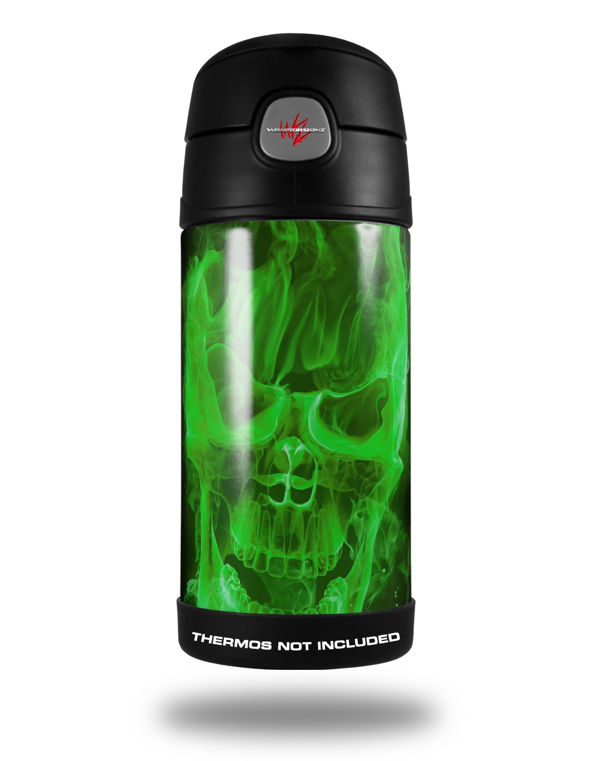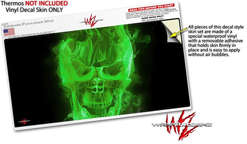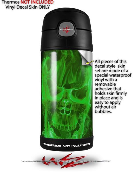 Skin Decal Wrap for Thermos Funtainer 12oz Bottle Flaming Fire Skull Green (BOTTLE NOT INCLUDED)
