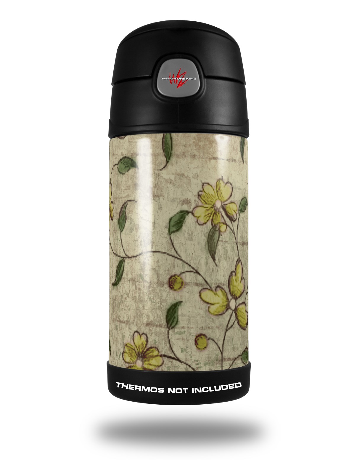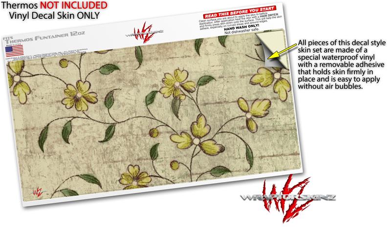 Skin Decal Wrap for Thermos Funtainer 12oz Bottle Flowers and Berries Yellow (BOTTLE NOT INCLUDED)