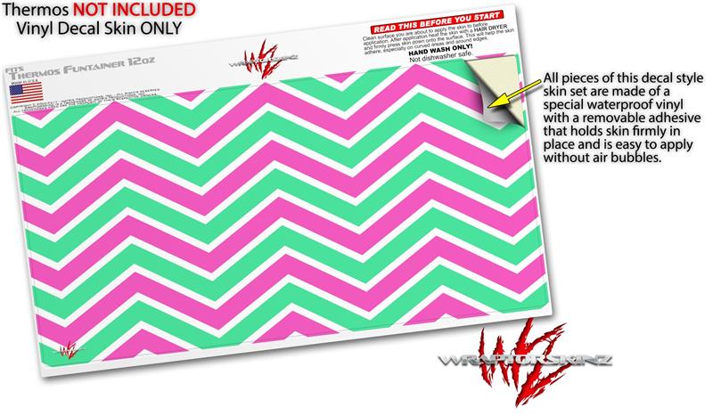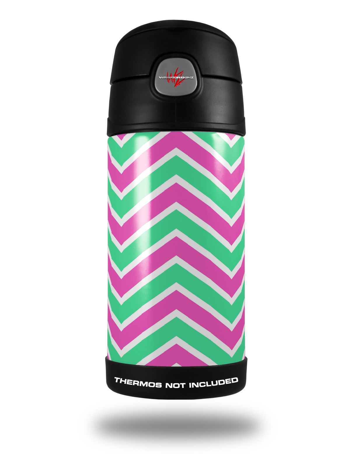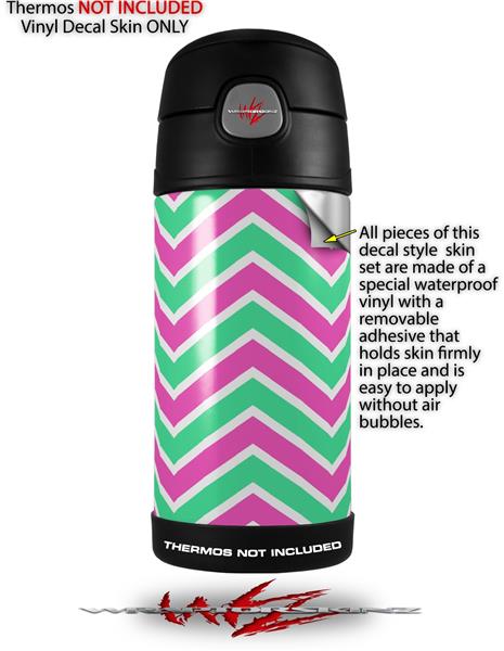 Skin Decal Wrap for Thermos Funtainer 12oz Bottle Zig Zag Teal Green and Pink (BOTTLE NOT INCLUDED)
