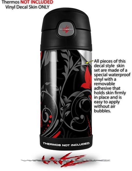Skin Decal Wrap for Thermos Funtainer 12oz Bottle Twisted Garden Gray and Red (BOTTLE NOT INCLUDED)