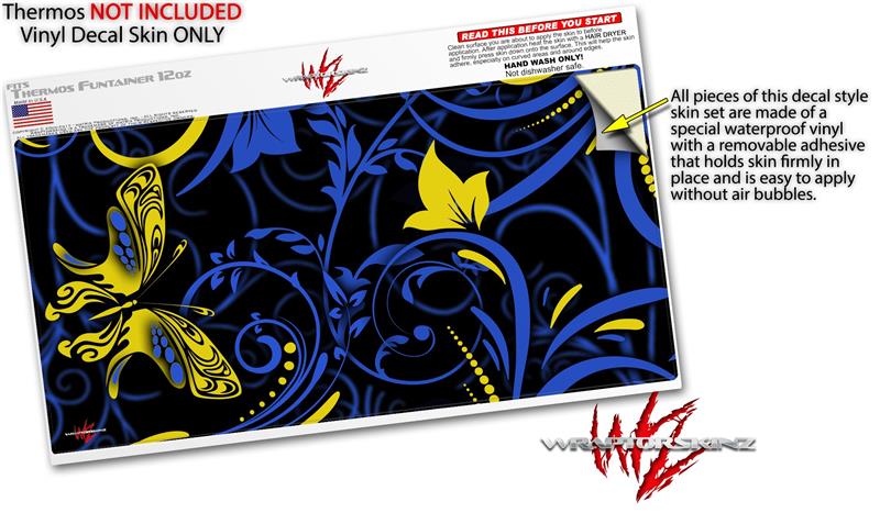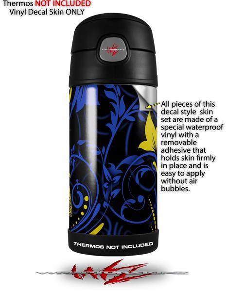 Skin Decal Wrap for Thermos Funtainer 12oz Bottle Twisted Garden Blue and Yellow (BOTTLE NOT INCLUDED)