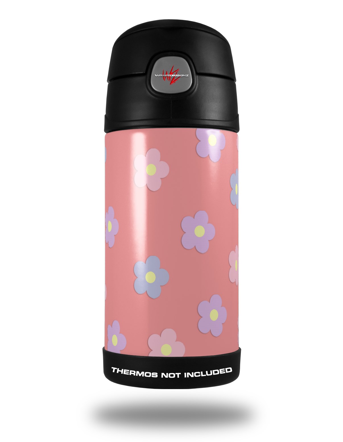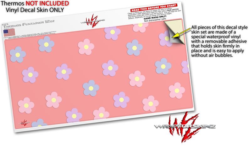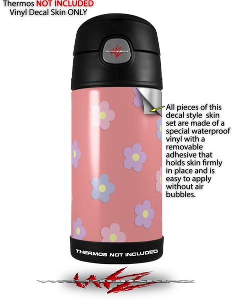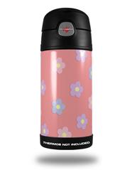 Skin Decal Wrap for Thermos Funtainer 12oz Bottle Pastel Flowers on Pink (BOTTLE NOT INCLUDED)
