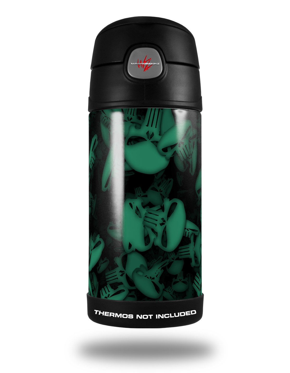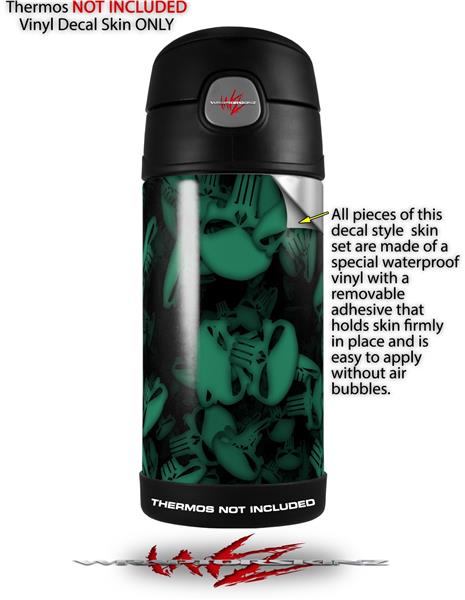 Skin Decal Wrap for Thermos Funtainer 12oz Bottle Skulls Confetti Seafoam Green (BOTTLE NOT INCLUDED)