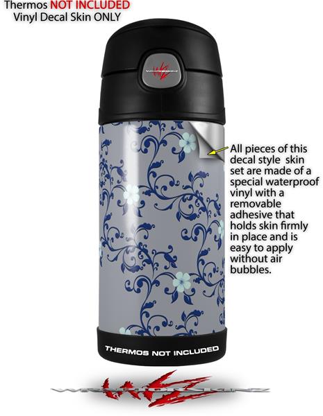 Skin Decal Wrap for Thermos Funtainer 12oz Bottle Victorian Design Blue (BOTTLE NOT INCLUDED)