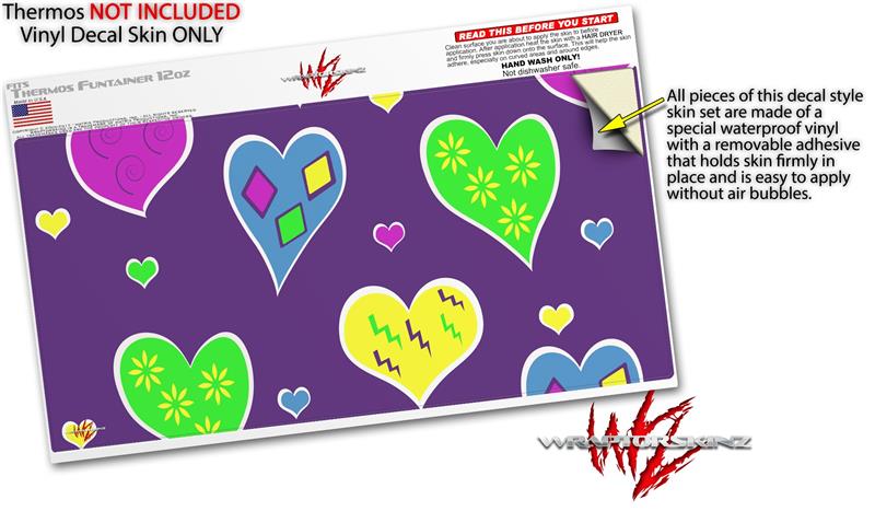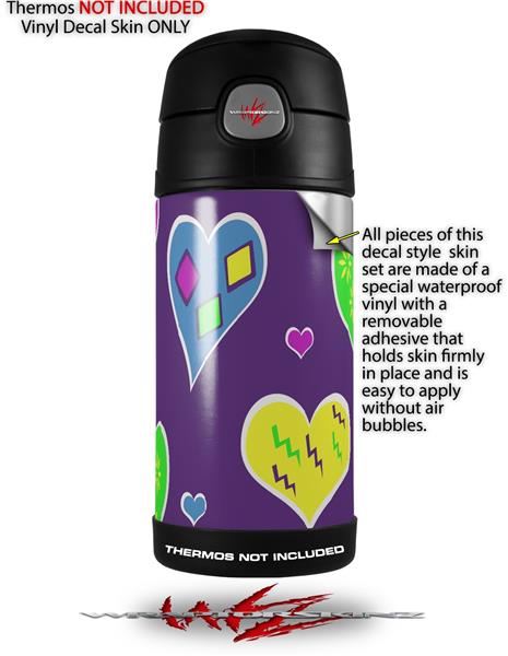 Skin Decal Wrap for Thermos Funtainer 12oz Bottle Crazy Hearts (BOTTLE NOT INCLUDED)