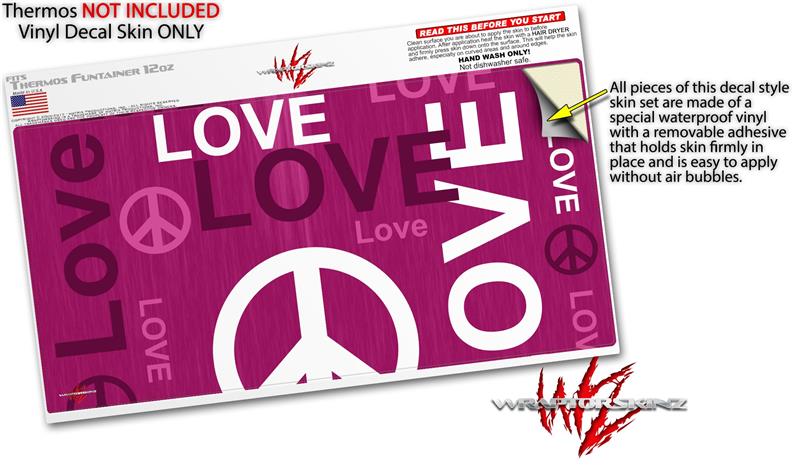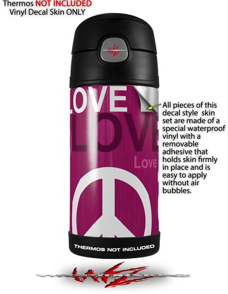 Skin Decal Wrap for Thermos Funtainer 12oz Bottle Love and Peace Hot Pink (BOTTLE NOT INCLUDED)