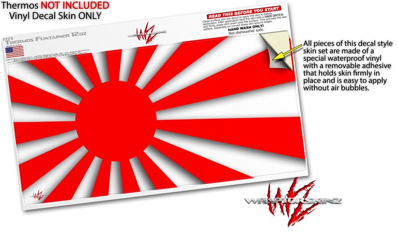 Skin Decal Wrap for Thermos Funtainer 12oz Bottle Rising Sun Japanese Flag Red (BOTTLE NOT INCLUDED)