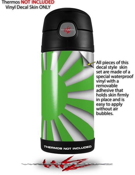 Skin Decal Wrap for Thermos Funtainer 12oz Bottle Rising Sun Japanese Flag Green (BOTTLE NOT INCLUDED)