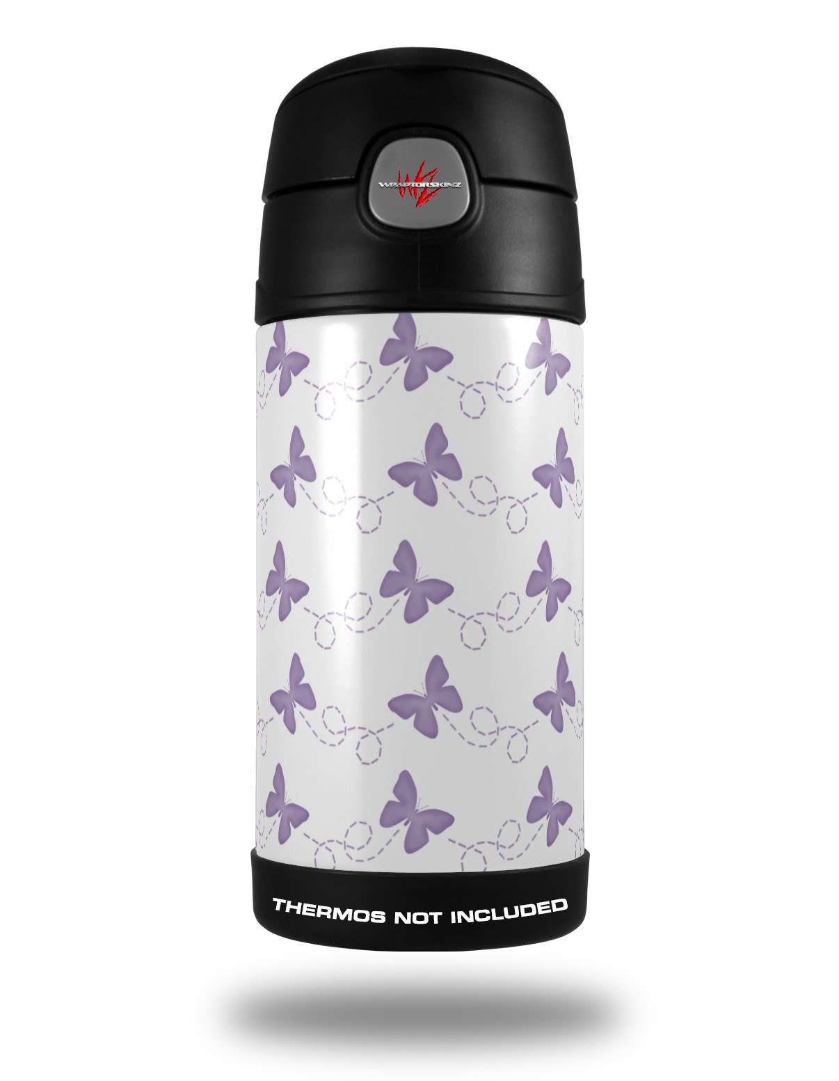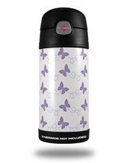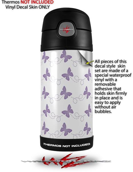 Skin Decal Wrap for Thermos Funtainer 12oz Bottle Pastel Butterflies Purple on White (BOTTLE NOT INCLUDED)