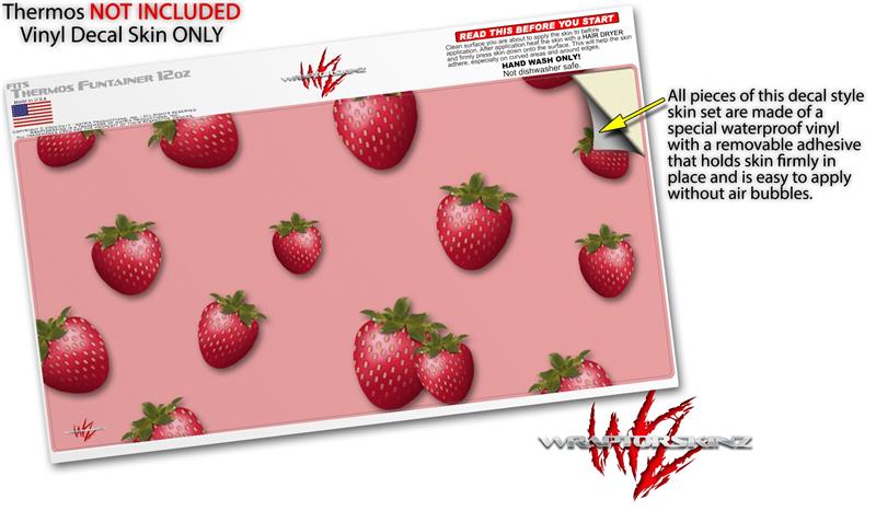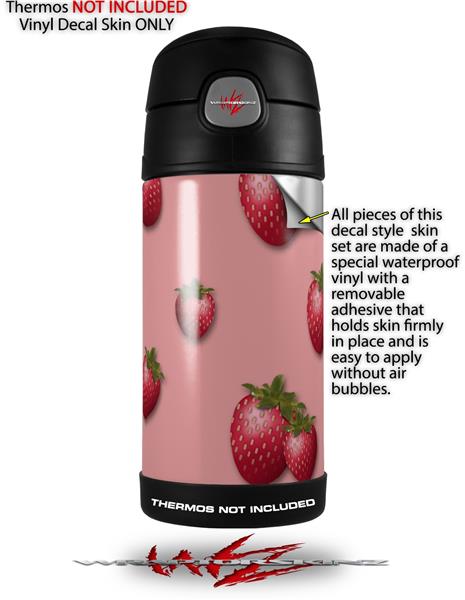 Skin Decal Wrap for Thermos Funtainer 12oz Bottle Strawberries on Pink (BOTTLE NOT INCLUDED)