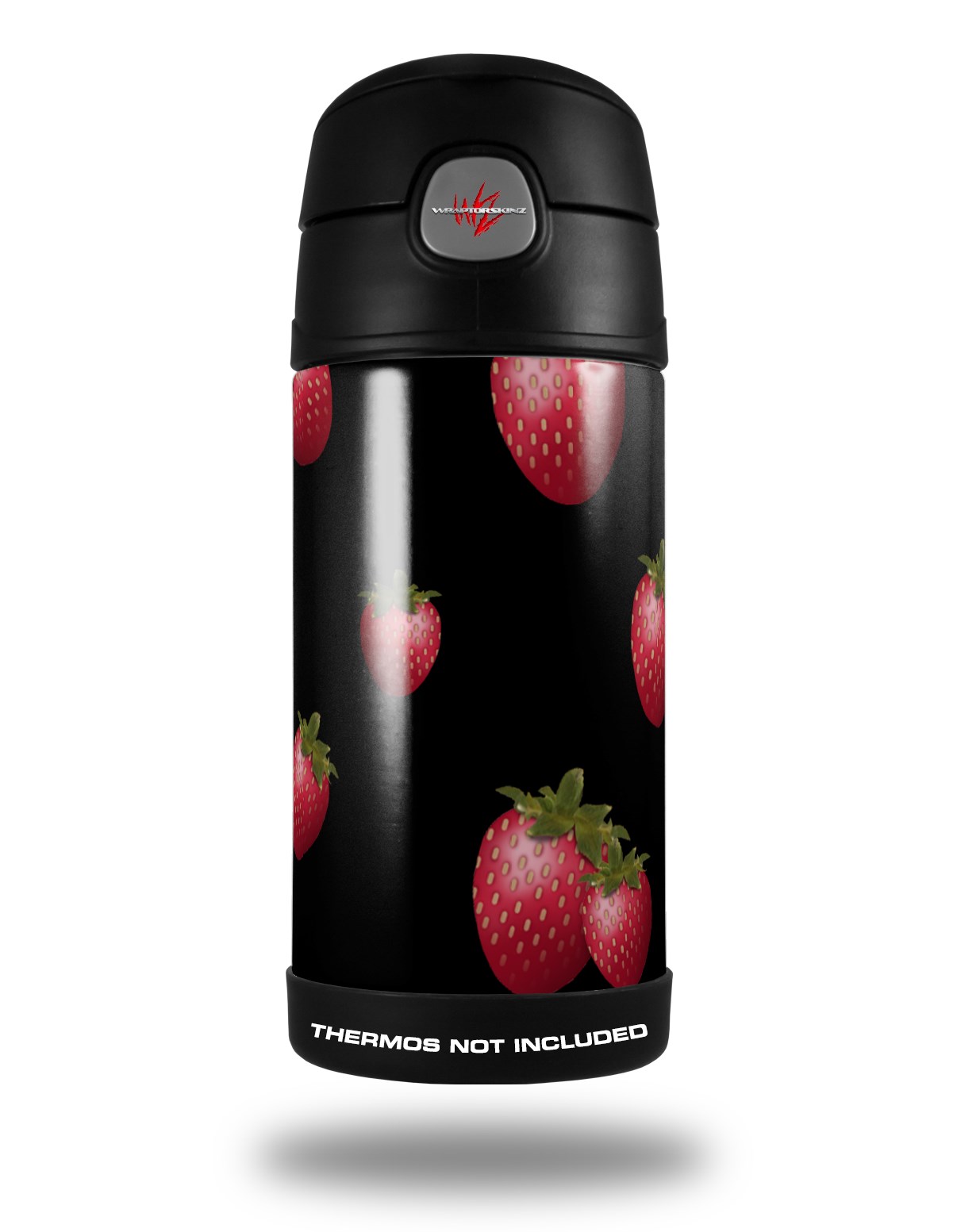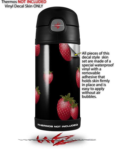Skin Decal Wrap for Thermos Funtainer 12oz Bottle Strawberries on Black (BOTTLE NOT INCLUDED)