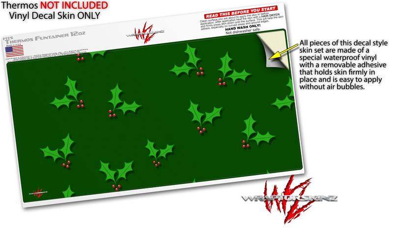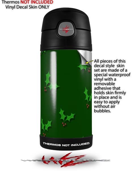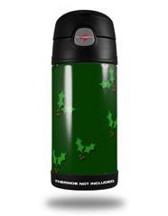 Skin Decal Wrap for Thermos Funtainer 12oz Bottle Christmas Holly Leaves on Green (BOTTLE NOT INCLUDED)