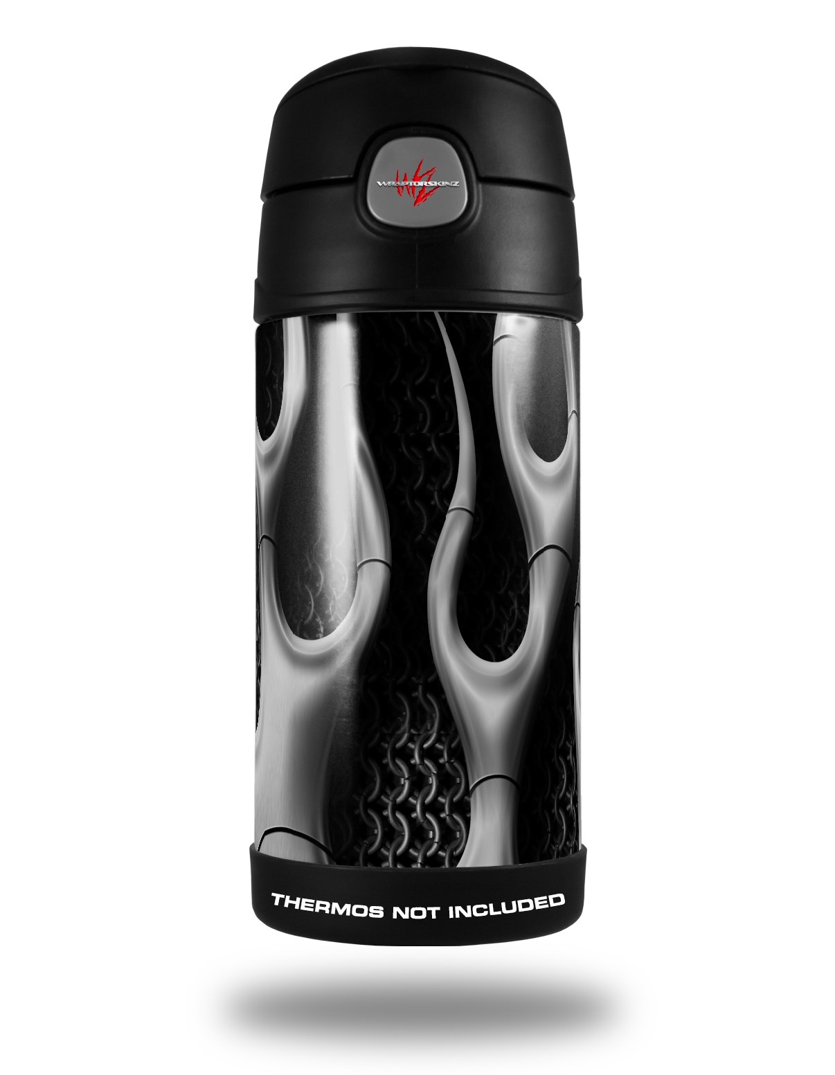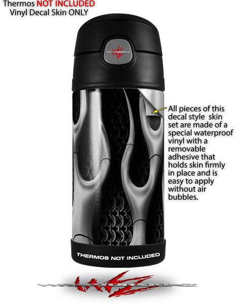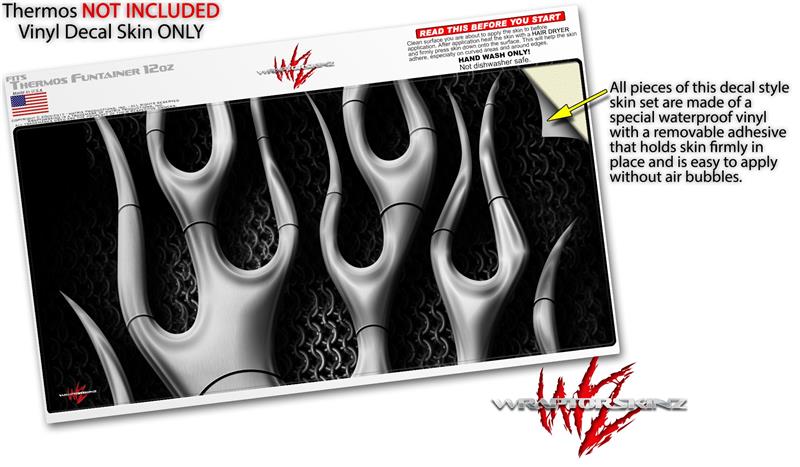 Skin Decal Wrap for Thermos Funtainer 12oz Bottle Metal Flames Chrome (BOTTLE NOT INCLUDED)