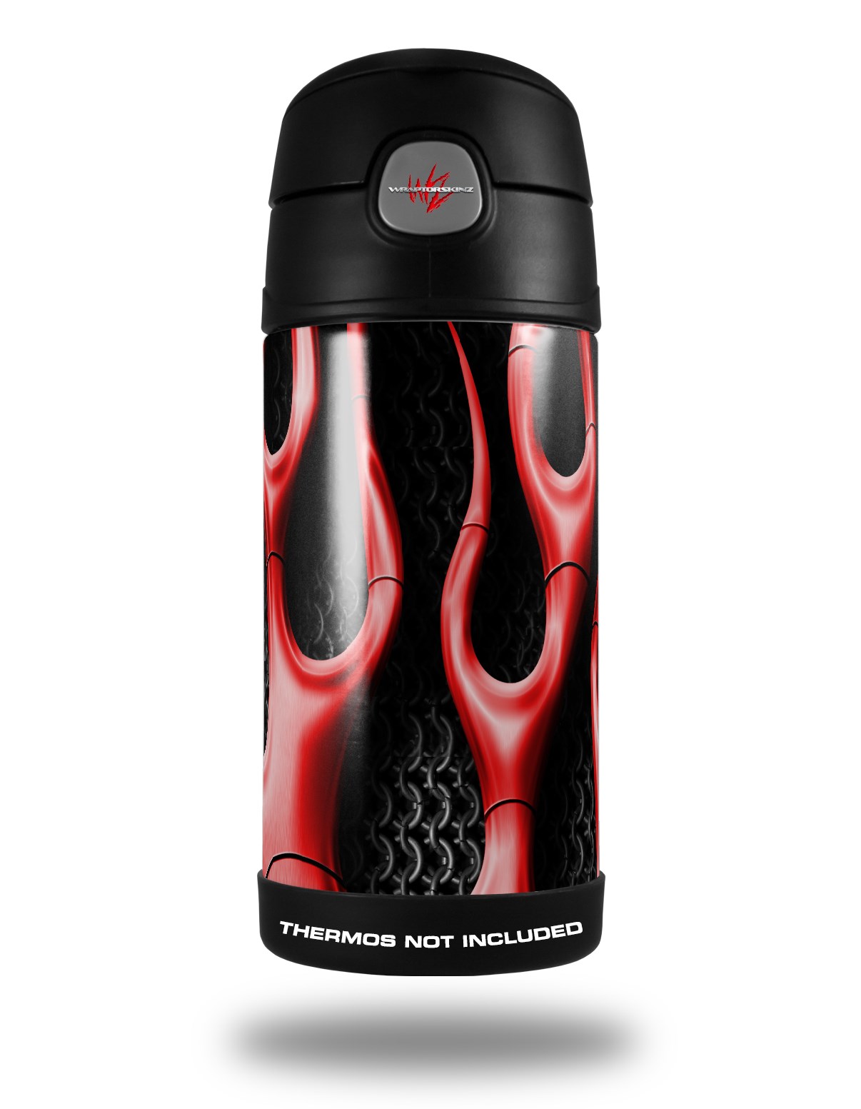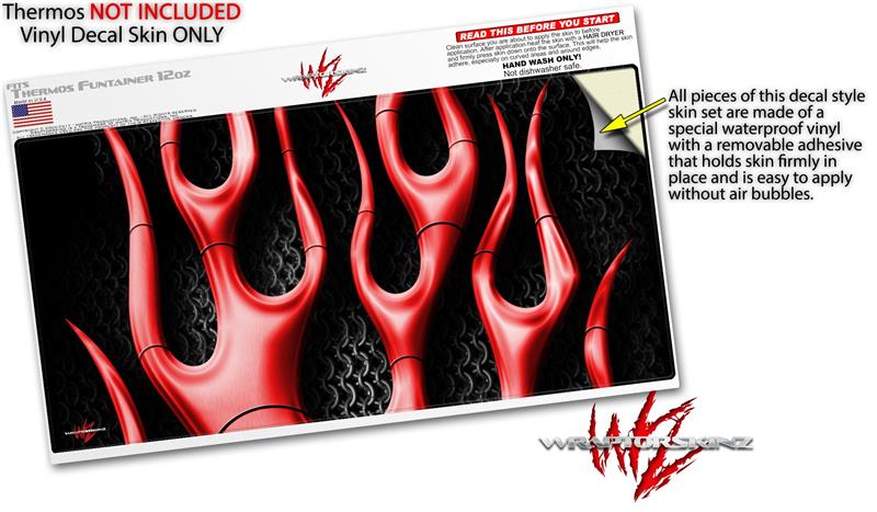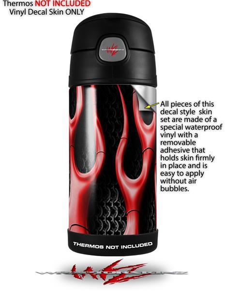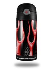 Skin Decal Wrap for Thermos Funtainer 12oz Bottle Metal Flames Red (BOTTLE NOT INCLUDED)