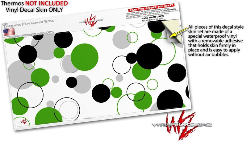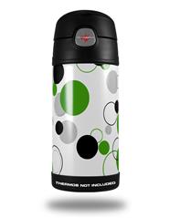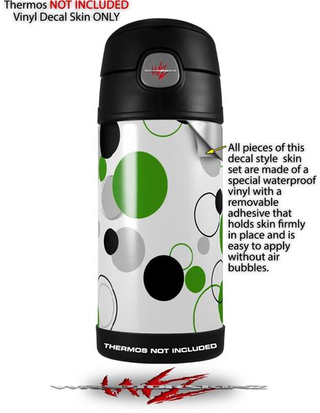 Skin Decal Wrap for Thermos Funtainer 12oz Bottle Lots of Dots Green on White (BOTTLE NOT INCLUDED)