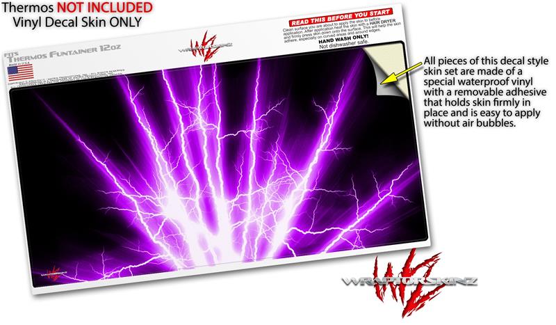 Skin Decal Wrap for Thermos Funtainer 12oz Bottle Lightning Purple (BOTTLE NOT INCLUDED)