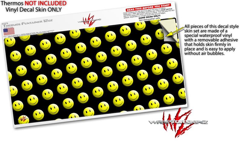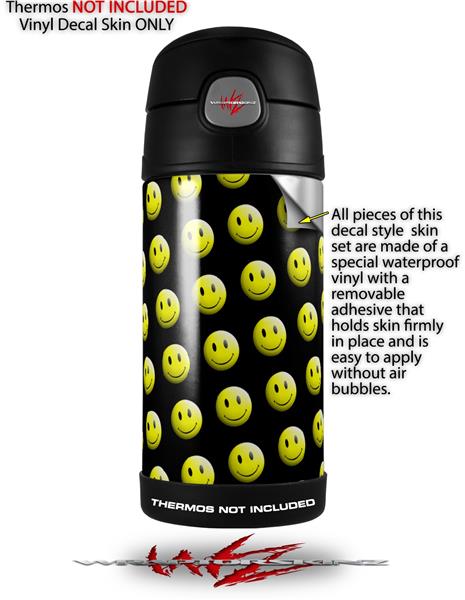 Skin Decal Wrap for Thermos Funtainer 12oz Bottle Smileys on Black (BOTTLE NOT INCLUDED)