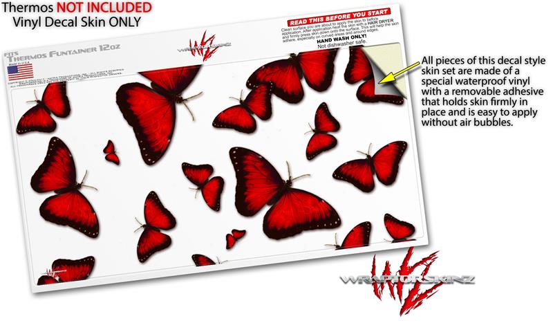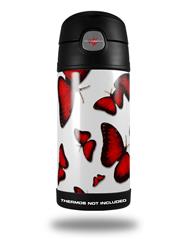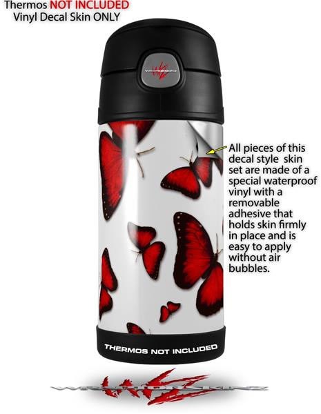Skin Decal Wrap for Thermos Funtainer 12oz Bottle Butterflies Red (BOTTLE NOT INCLUDED)