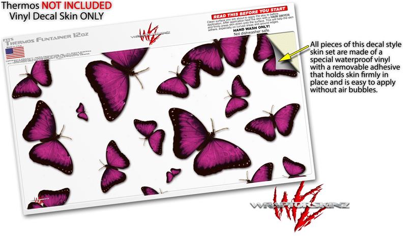 Skin Decal Wrap for Thermos Funtainer 12oz Bottle Butterflies Purple (BOTTLE NOT INCLUDED)