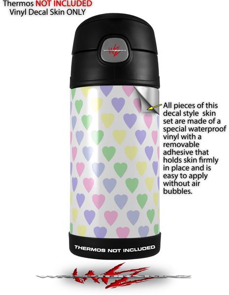 Skin Decal Wrap for Thermos Funtainer 12oz Bottle Pastel Hearts on White (BOTTLE NOT INCLUDED)