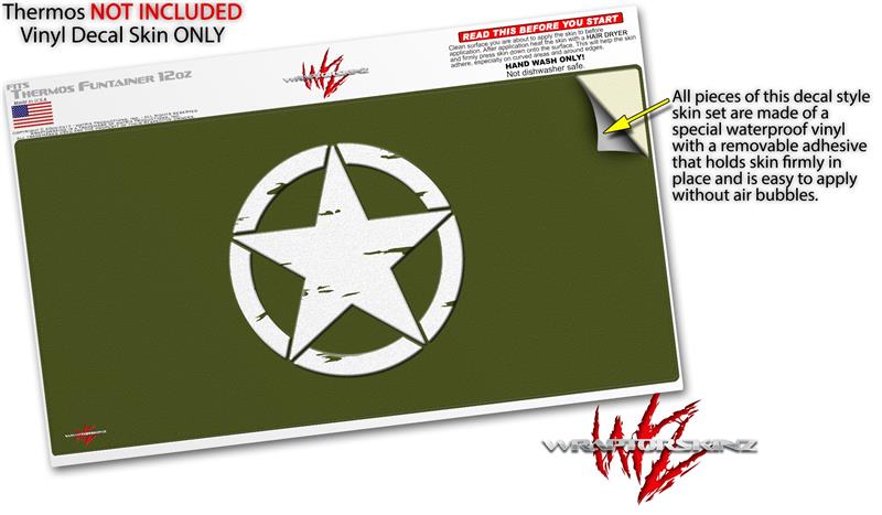 Skin Decal Wrap for Thermos Funtainer 12oz Bottle Distressed Army Star (BOTTLE NOT INCLUDED)