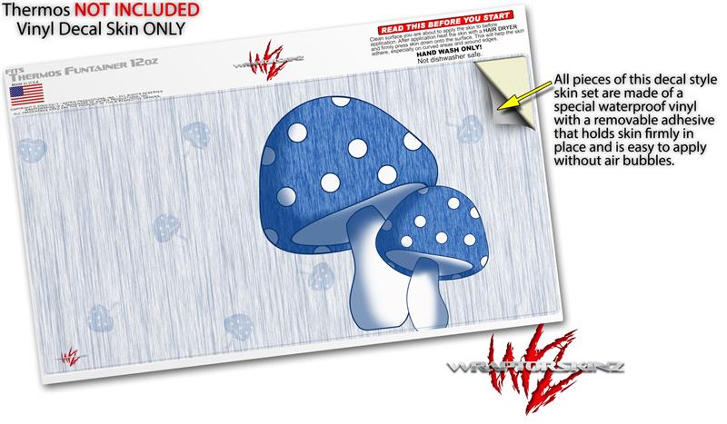 Skin Decal Wrap for Thermos Funtainer 12oz Bottle Mushrooms Blue (BOTTLE NOT INCLUDED)