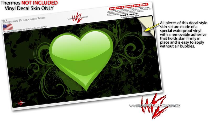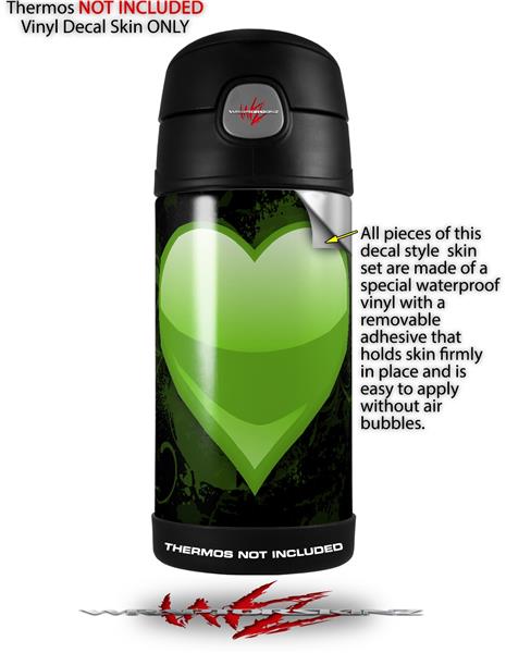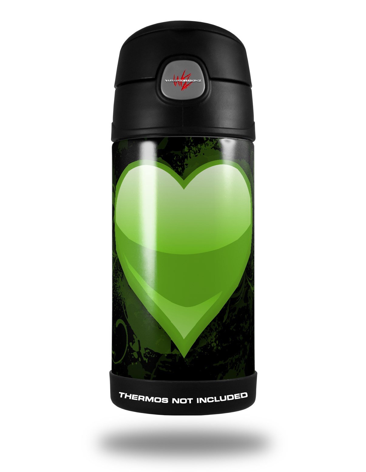 Skin Decal Wrap for Thermos Funtainer 12oz Bottle Glass Heart Grunge Green (BOTTLE NOT INCLUDED)