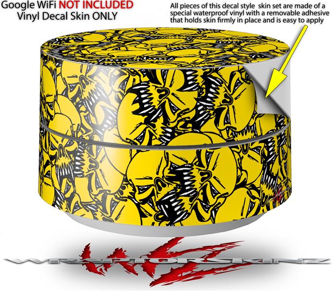 Skin Decal Wrap for Google WiFi Original Scattered Skulls Yellow (GOOGLE WIFI NOT INCLUDED)