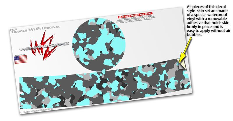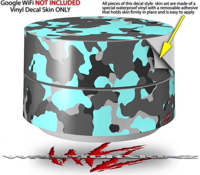 Skin Decal Wrap for Google WiFi Original WraptorCamo Old School Camouflage Camo Neon Teal (GOOGLE WIFI NOT INCLUDED)
