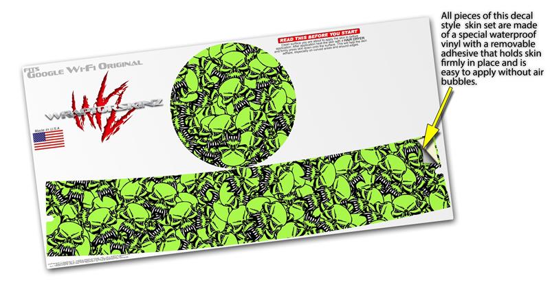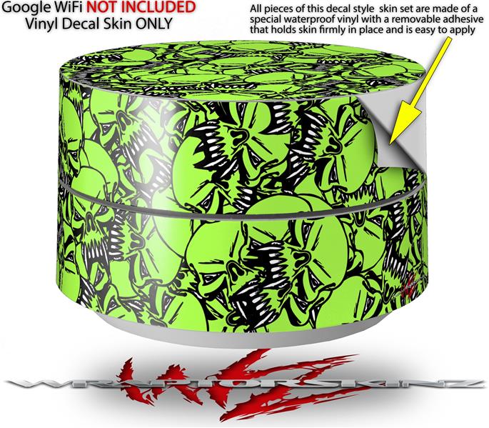 Skin Decal Wrap for Google WiFi Original Scattered Skulls Neon Green (GOOGLE WIFI NOT INCLUDED)