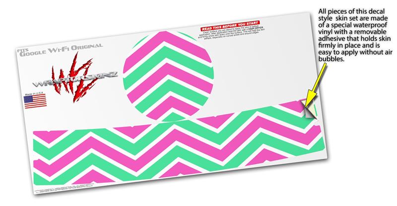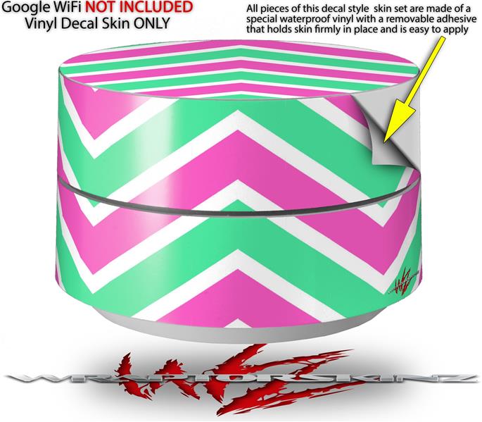 Skin Decal Wrap for Google WiFi Original Zig Zag Teal Green and Pink (GOOGLE WIFI NOT INCLUDED)