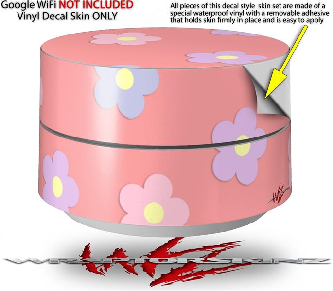 Skin Decal Wrap for Google WiFi Original Pastel Flowers on Pink (GOOGLE WIFI NOT INCLUDED)