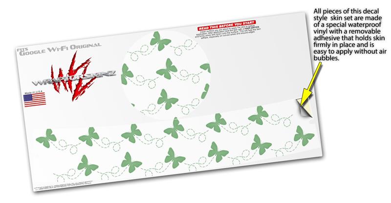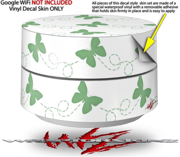 Skin Decal Wrap for Google WiFi Original Pastel Butterflies Green on White (GOOGLE WIFI NOT INCLUDED)