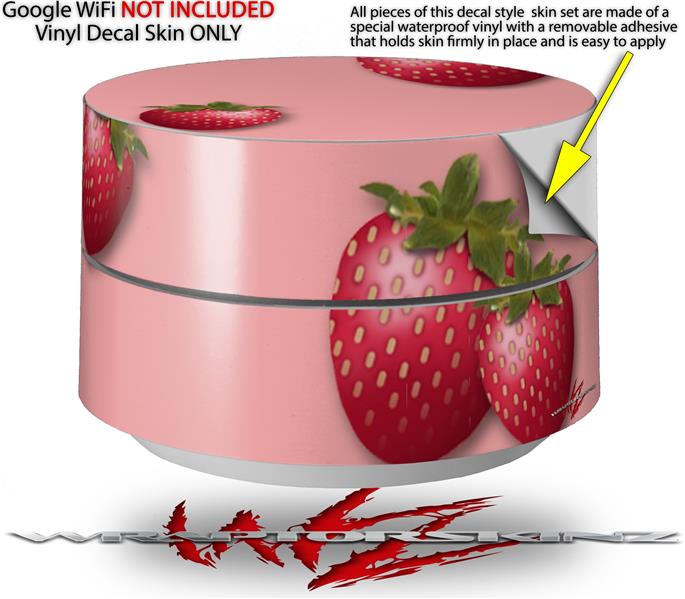 Skin Decal Wrap for Google WiFi Original Strawberries on Pink (GOOGLE WIFI NOT INCLUDED)