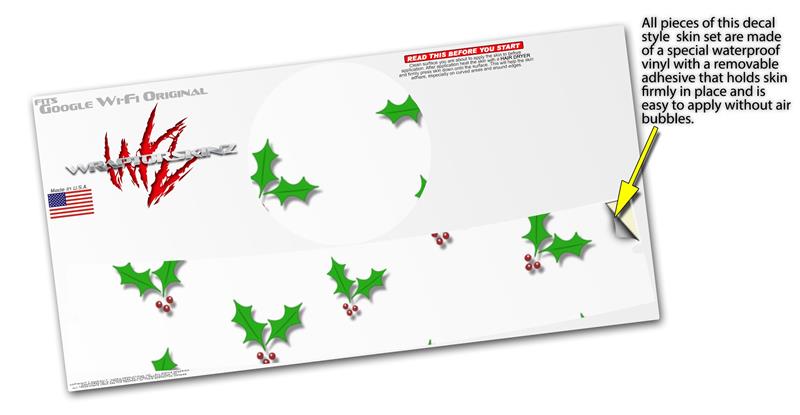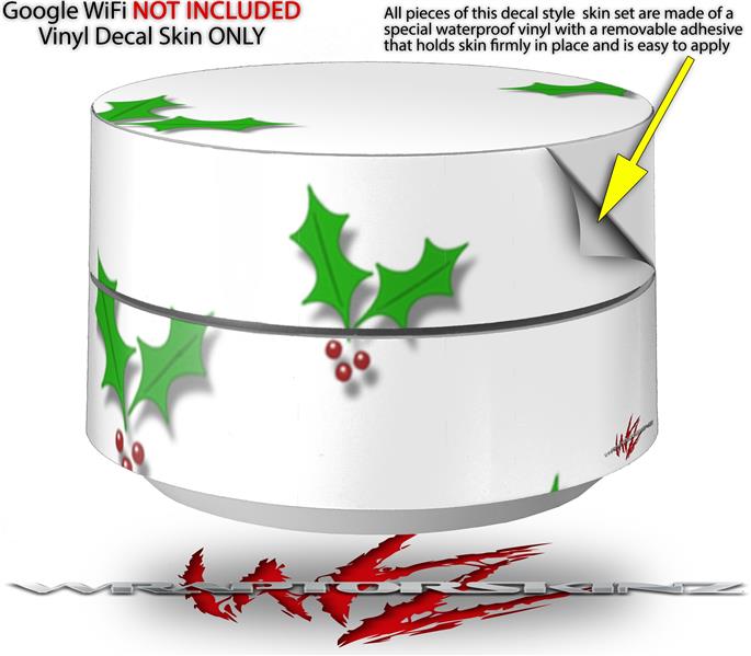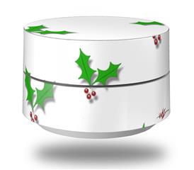 Skin Decal Wrap for Google WiFi Original Christmas Holly Leaves on White (GOOGLE WIFI NOT INCLUDED)