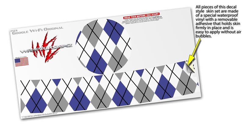 Skin Decal Wrap for Google WiFi Original Argyle Blue and Gray (GOOGLE WIFI NOT INCLUDED)