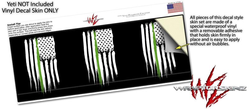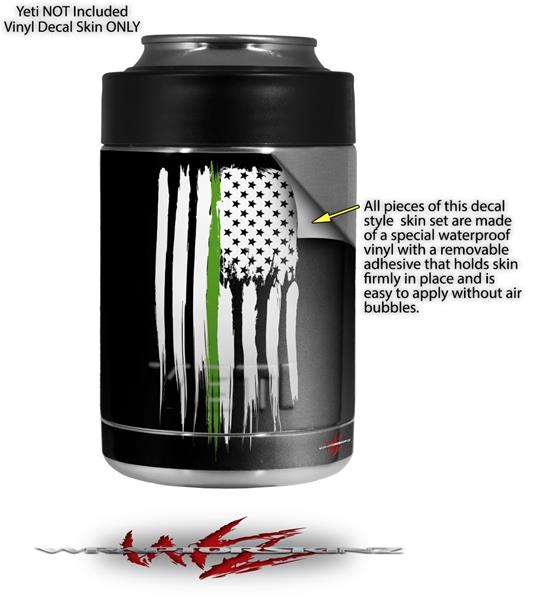 Skin Decal Wrap for Yeti Colster, Ozark Trail and RTIC Can Coolers - Yeti Colster Brushed USA American Flag Green Line (COOLER NOT INCLUDED)