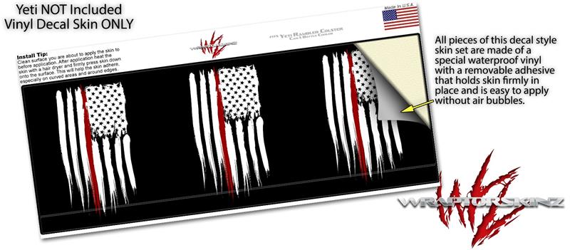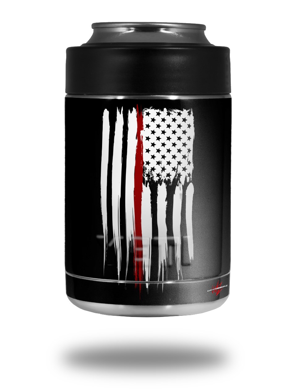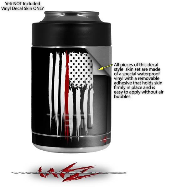 Skin Decal Wrap for Yeti Colster, Ozark Trail and RTIC Can Coolers - Yeti Colster Brushed USA American Flag Red Line (COOLER NOT INCLUDED)
