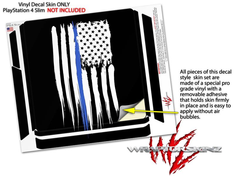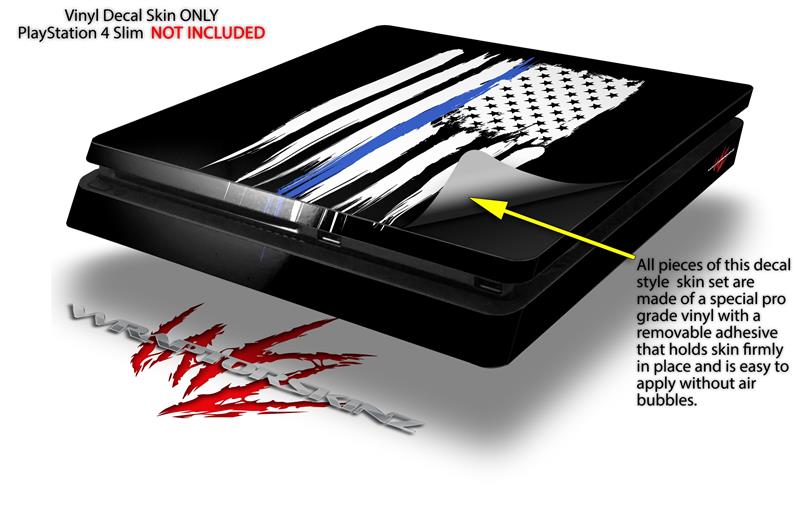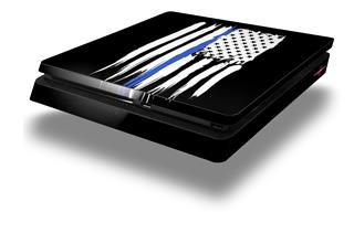 Vinyl Decal Skin Wrap compatible with Sony PlayStation 4 Slim Console Brushed USA American Flag Blue Line (PS4 NOT INCLUDED)