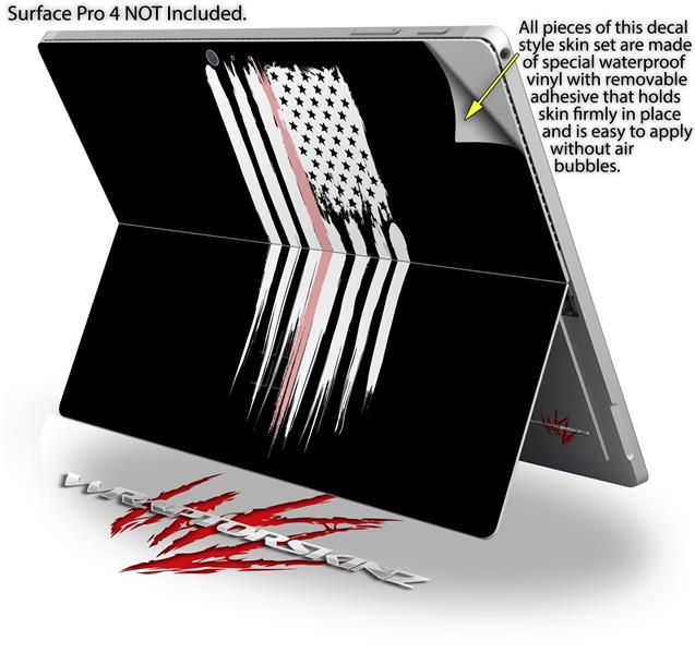 Decal Style Vinyl Skin for Microsoft Surface Pro 4 - Brushed USA American Flag Pink Line - (SURFACE NOT INCLUDED)
